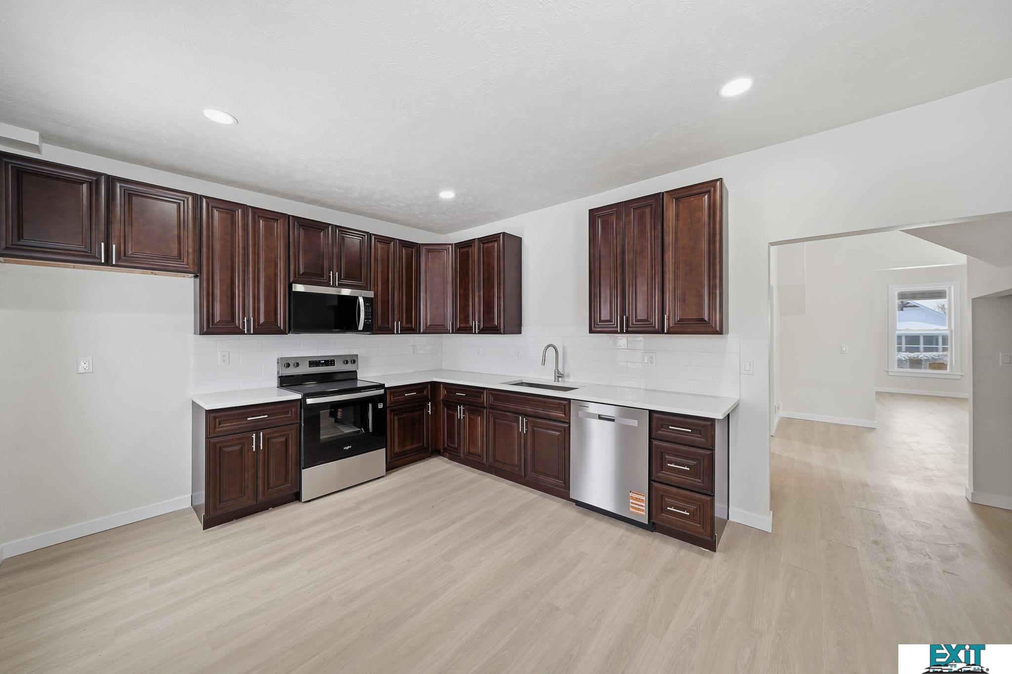 This beautifully remodeled home has so much to offer. Enjoy a brand new front porch, luxury vinyl flooring in the living room, kitchen, and formal dining room. The entire home has been completely renovated with new countertops, cabinets, and appliances. You'll also love the renovated back porch. There is a spacious third bedroom upstairs (8x22), two bedrooms on the main floor, and a completely renovated bathroom. With new windows, updated electrical and plumbing, and a new city gas line, it is ready to move in. Plus, the house includes convenient alley access. SOLD AS IS.